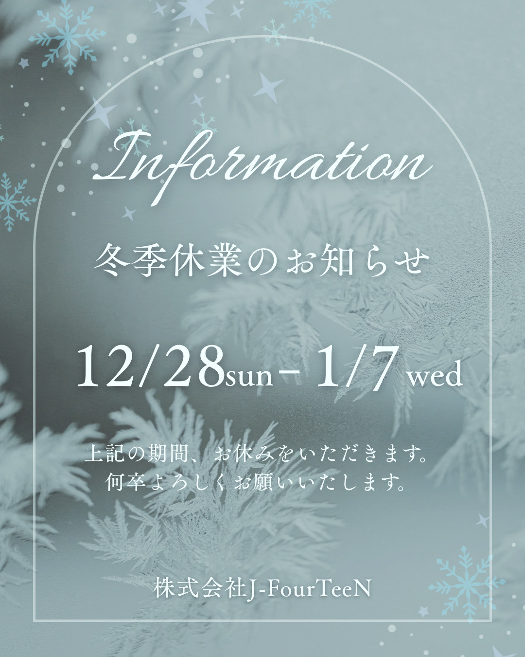 年末年始休業のご案内です